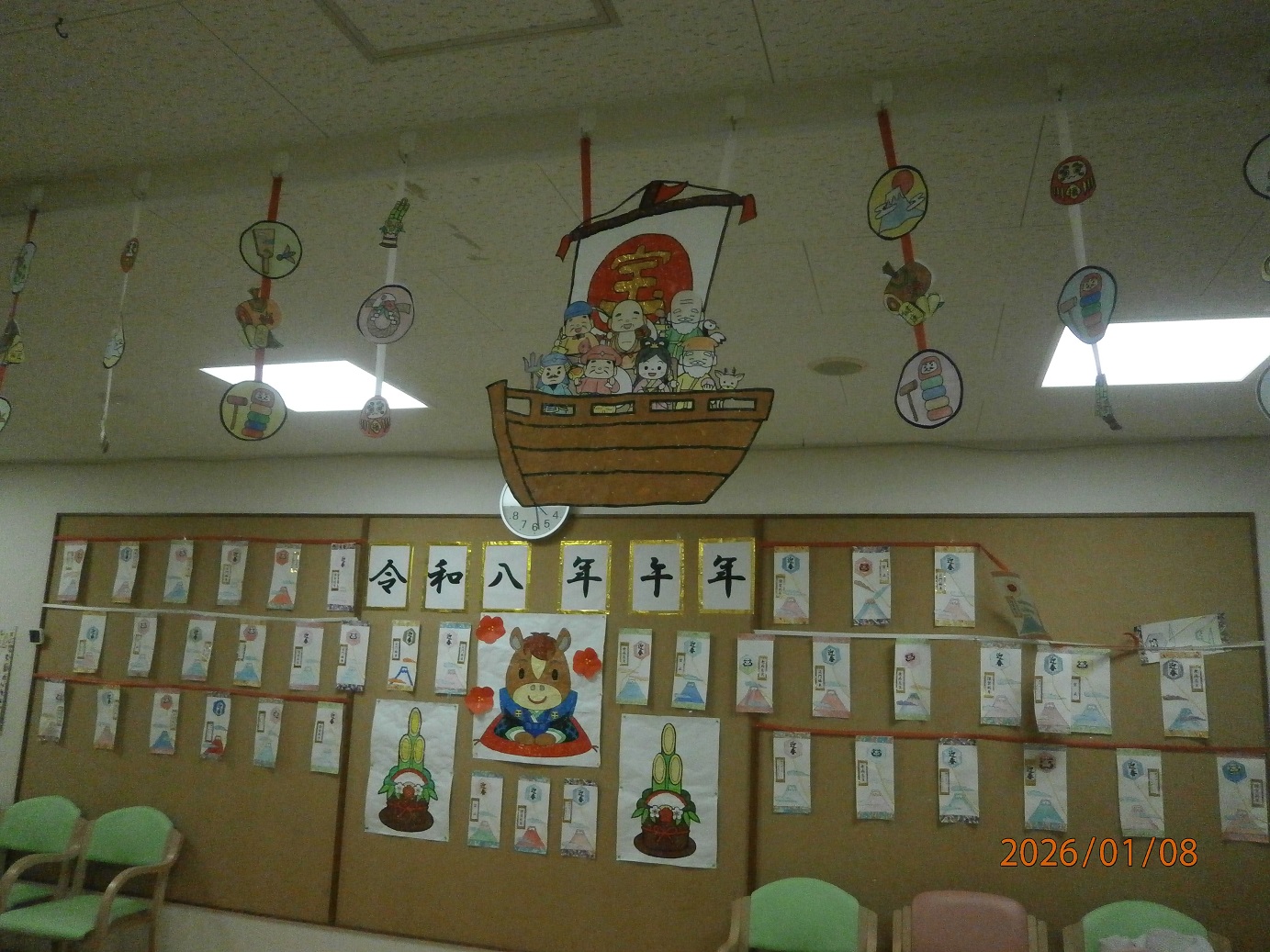 宝船の貼り絵も、利用者さんにお手伝いしてもらいました